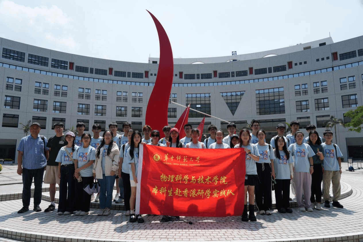 为拓展学生国际视野、促进学术交流合作,华中师范大学物理学院本科生实践队于2025年7月7日赴香港科技大学(HKUST)开展参访研学活动。队员们深入了解了香港和港科大的文化历史、参观了港科大物理系部分实验室,与师生围绕物理前沿课题展开对话,实地感受这所亚洲顶尖学府的创新氛围与跨学科研究特色。