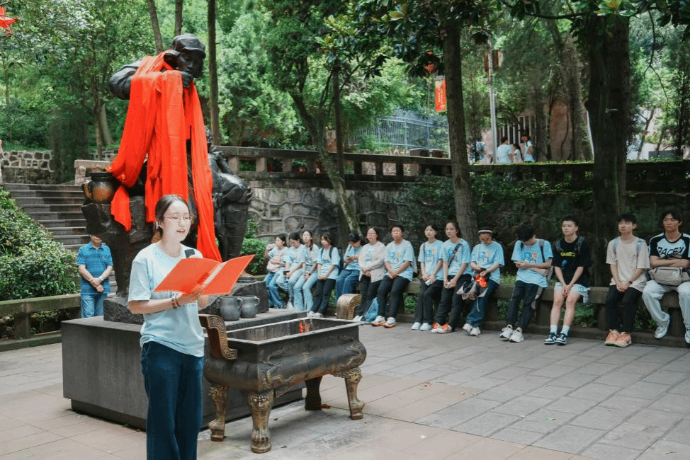 驻足于“红军坟”雕塑前,阚丽媛同志结合红军革命事迹及其精神内涵,为支部同志讲授了一场主题微党课。同志们聆听“红军菩萨”龙思泉与百姓“军民鱼水、生死与共”的动人故事,感悟革命信仰与力量。她提到,新时代青年须传承红色基因、弘扬伟大精神,为实现中华民族伟大复兴贡献青春力量。
