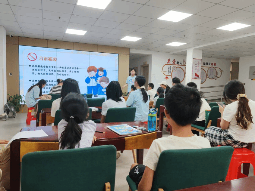 整堂课上,孩子们始终专注投入,时而蹙眉思考,时而积极举手提问,在问答互动中加深了对校园霸凌的认识。此次普法课堂通过“案例+讲解+互动”的形式,让孩子们既认清了校园霸凌的危害,也掌握了自我保护的方法。古楼社区暑假实践队用实际行动为青少年的健康成长保驾护航,让法治的种子在孩子们心中悄然扎根。