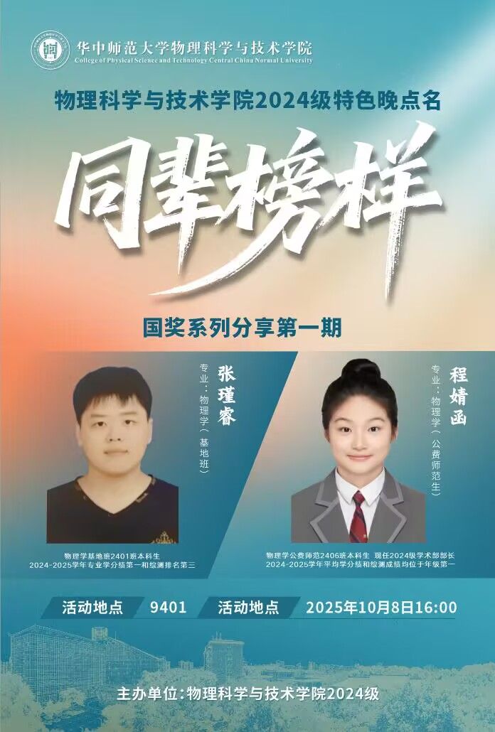学工动态|物院24级国奖系列分享晚点名:“学霸”传法明方向,评优帮扶促成长