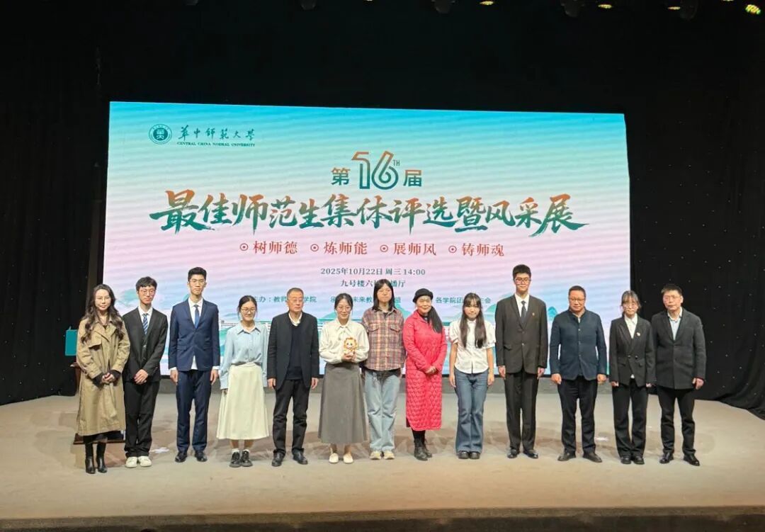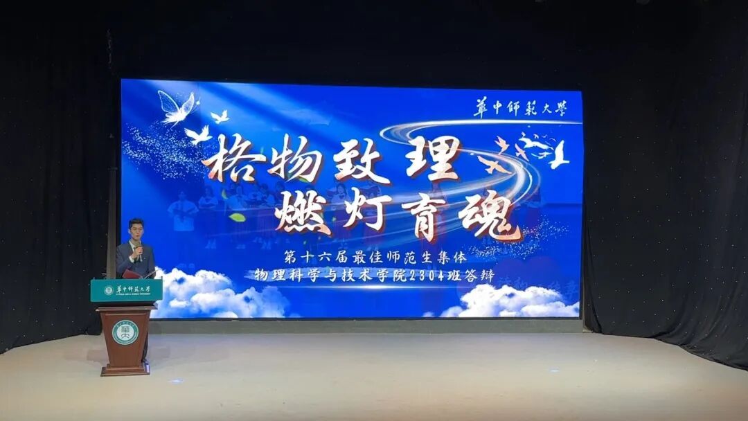 10月22日下午,我校“第十六届最佳师范生集体评选暨风采展”在九号楼演播厅举行。活动由华中师范大学教师教育学院主办、未来教育家联盟承办,共有15个来自不同院系的师范生集体参与角逐。物理科学与技术学院公费师范专业2304班(班主任:许明梅)凭借精彩的展演表现与优秀的现场答辩脱颖而出,斩获“最佳师范生集体”称号。