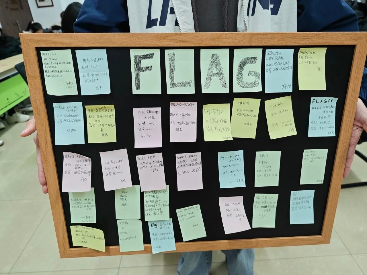 随后进行的“Flag立稳”环节将班会推向高潮。每位同学领取统一的“Flag挑战卡”,认真写下自己的期末目标、达成奖励与失败惩罚,并签下姓名。多位同学主动上台宣读Flag,展现出坚定的决心与昂扬的斗志。所有Flag卡片随后被张贴在班级“Flag墙”上,形成一道鼓舞人心的风景线。班主任何明健老师鼓励大家脚踏实地、互相监督,共同实现目标,并宣布达成Flag的同学将在下学期获得纪念礼品。