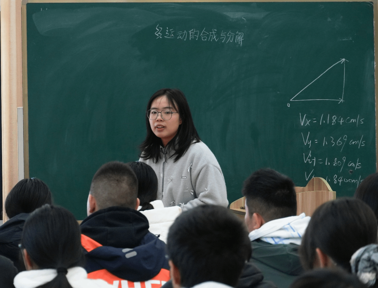 白亚美以“小船过河”这一生活实例引入主题,迅速吸引学生注意。她紧扣物理教学的实验性与逻辑性特点,通过演示乒乓球运动实验、引导学生动手计算、讲解结合板书作图示范等多种方式,层层推进教学内容。课堂中,她鼓励学生主动参与实验操作与理论推理过程,充分调动了学生的学习积极性,体现了“以学生为中心”的教学理念。何婧琦在信息技术辅助方面提供了有力支持,利用计算机模拟与轨迹拟合等手段,生动呈现了运动合成的过程,充分展现了我院师范生熟练运用现代教育技术赋能课堂教学的扎实教学能力。
