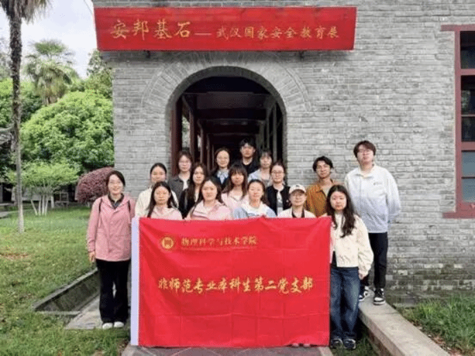 为深入学习贯彻总体国家安全观,强化学生党员纪律意识与责任担当,2026年4月14日上午,华中师范大学物理科学与技术学院非师范专业本科生党支部前往武汉革命博物馆,开展“筑牢纪律防线,守护国家安全”红色场馆实景研学主题党日活动。支部书记崔嘉欣、全体学生党员共同参与此次研学实践。