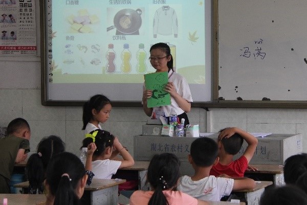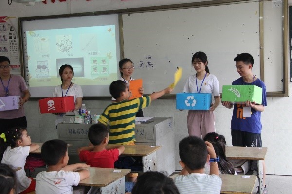 物理科学与技术学院讯(通讯员 张宏基)7月18日下午,物理科学与技术学院党员国情学习与实践队队员冯芮在柳山湖镇中心学校给孩子们上了一堂以“垃圾分类”为主题的课程,向孩子们介绍垃圾分类的方法与意义。