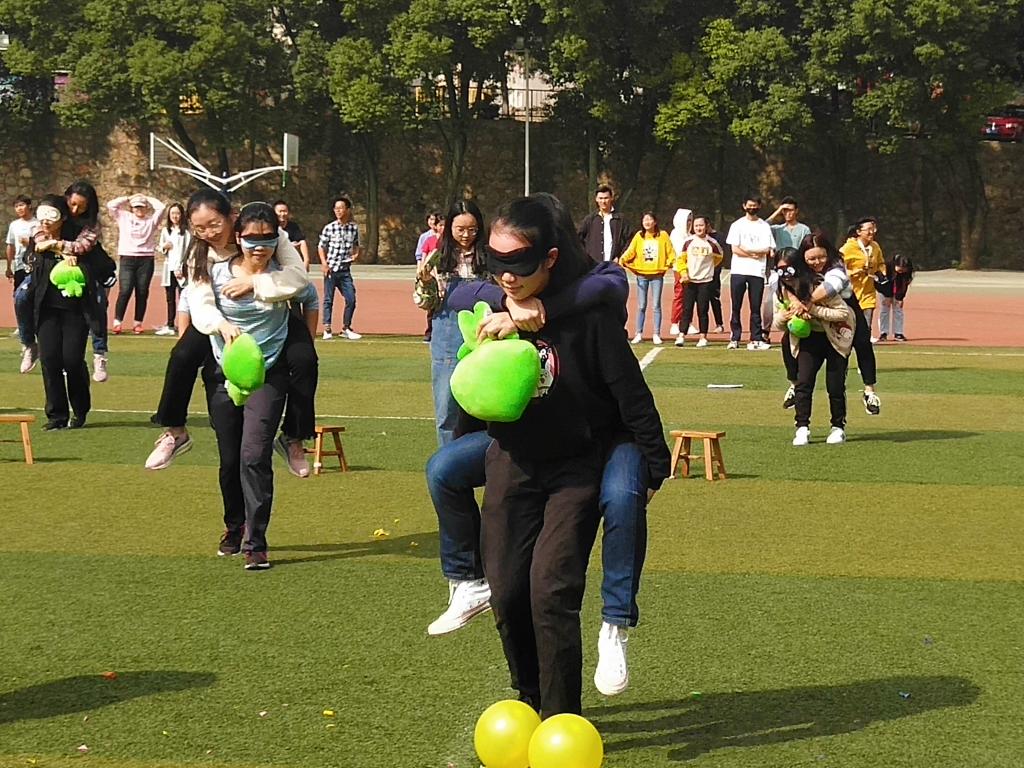比赛在“精诚合作”这个项目时达到了高潮。在比赛中需由一人扮演瞎子,一人扮瘸子,瞎子需背着瘸子完成捡娃娃,跨椅子,踩气球三项任务,最后完成任务所花时间最短的小组获胜。这是一项既考验合作又考验体力的比赛,成员们需结合自身体力,体重等综合因素来决定扮演的角色,在比赛中团干们之间的默契度也能够得到提高。