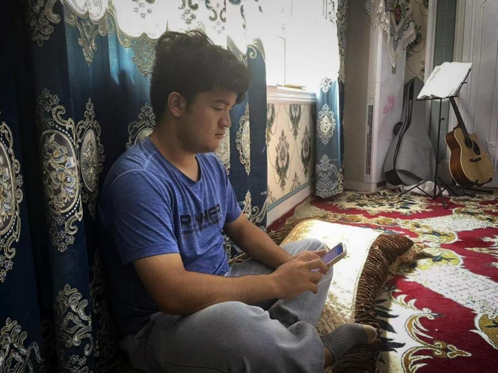 (图为祖丽皮努尔·麦麦提艾力走访的维吾尔族青年填写问卷)
