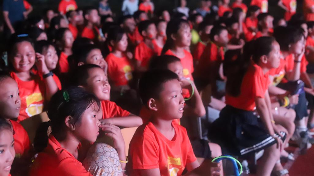 言语或许转瞬即逝,但记忆可以通过音像留声。全部节目表演完毕后,屏幕上放映起了夏令营的总结视频。视频展现了夏令营期间学生们的课堂片段,或端坐听讲,或举手发言,或围成一组做实验,或在老师的指导下练书法。视频的最后,是支教队队员对学生们的殷切寄语。视频放映结束,本次文艺汇报演出正式落下帷幕。