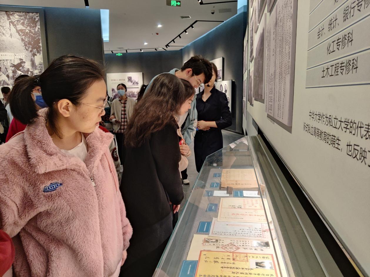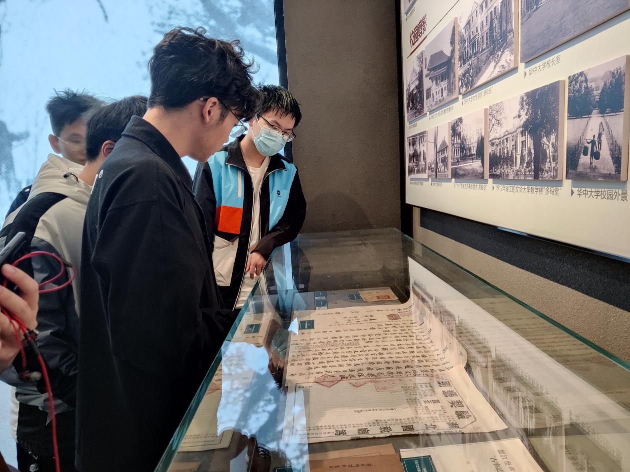 同学们认真聆听讲解,不时驻足在某一个展览前仔细观察陈列的展品,诸多文物让历史鲜活起来,唤醒同学们的历史记忆。邓小平同志亲笔题写校名的手稿、林之棠等著名学者的手稿、“大别山师魂”汪金权绝笔等珍贵的校史实物史料更引起学生们的阵阵惊叹。每位同学都积极地交流讨论,抒发关于校史的感想。