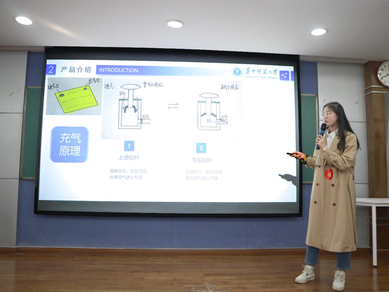 根据12组参赛队伍抽签决定的出场顺序,各个参赛队伍代表通过项目展览的方式进行现场答辩,评委老师参观项目作品并针对作品进行提问,基于项目综合表现进行打分。选手们立足于机械设计、信息技术、生命科学等领域,针对项目中的设计理念、实现原理、应用设想等方面展开论述。
