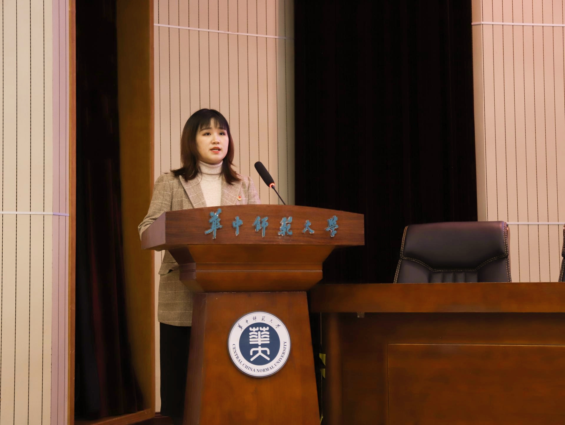 高玉茜代表共青团华中师范大学物理科学与技术学院第一届委员会向大会作题为《高举育人新旗帜,引领当代新青年》工作报告,全面总结了五年来团学的工作,客观分析了当前面临的机遇和挑战。物理科学与技术学院团委坚持以组织建设为基础、以思想文化为核心、以制度建设为保障、以队伍建设为重点,一步步筑牢青年思想阵地,强化成员引领功效。