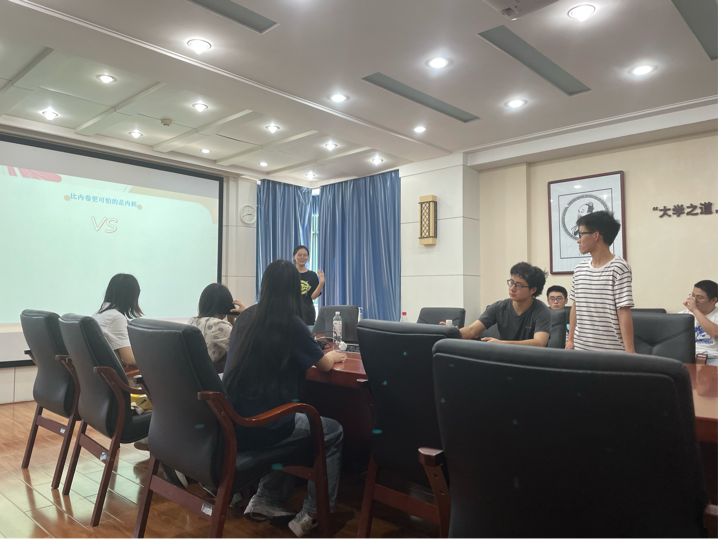 活动伊始,活动给出了“内耗”和“内卷”两个概念,这是目前大学生活中普遍出现的现象。班长郭意邀请同学回答了个人所理解的内卷和内耗,并且做比较。她告诉同学们,内耗是比内卷更消极的一种现象,我们应该合理地接受自己,化解情绪,减少内耗现象,争做阳光开朗大学生。