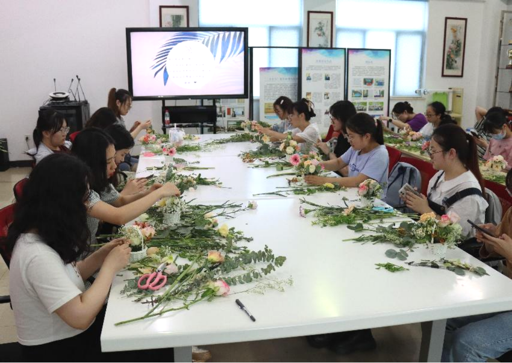 工作人员刁宇轩表示:插花艺术能做到将美育同心理健康教育相结合,同时还能起到美化环境,装点生活的作用。插花前通过便签纸抒发近期的不顺事件,插花后通过心愿卡片对未来寄予期望,使大学生在活动过程中身心得到放松,情绪得以释放。