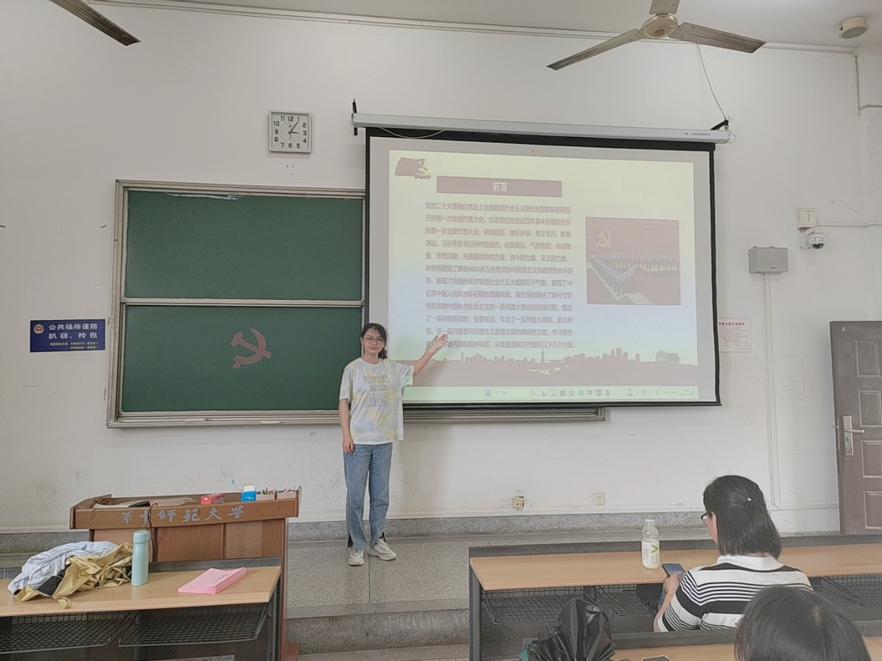 为学习党的二十大精神,学习新时代伟大成就,激励同学们弘扬光荣传统、赓续红色血脉。5月27日下午,2207团支部于9203教室举办以“忆峥嵘岁月,数伟大成就”为主题的团日活动。本次活动由团支书于慧馨主持,班主任杨利建出席本次活动,2207班全体同学共同参与。