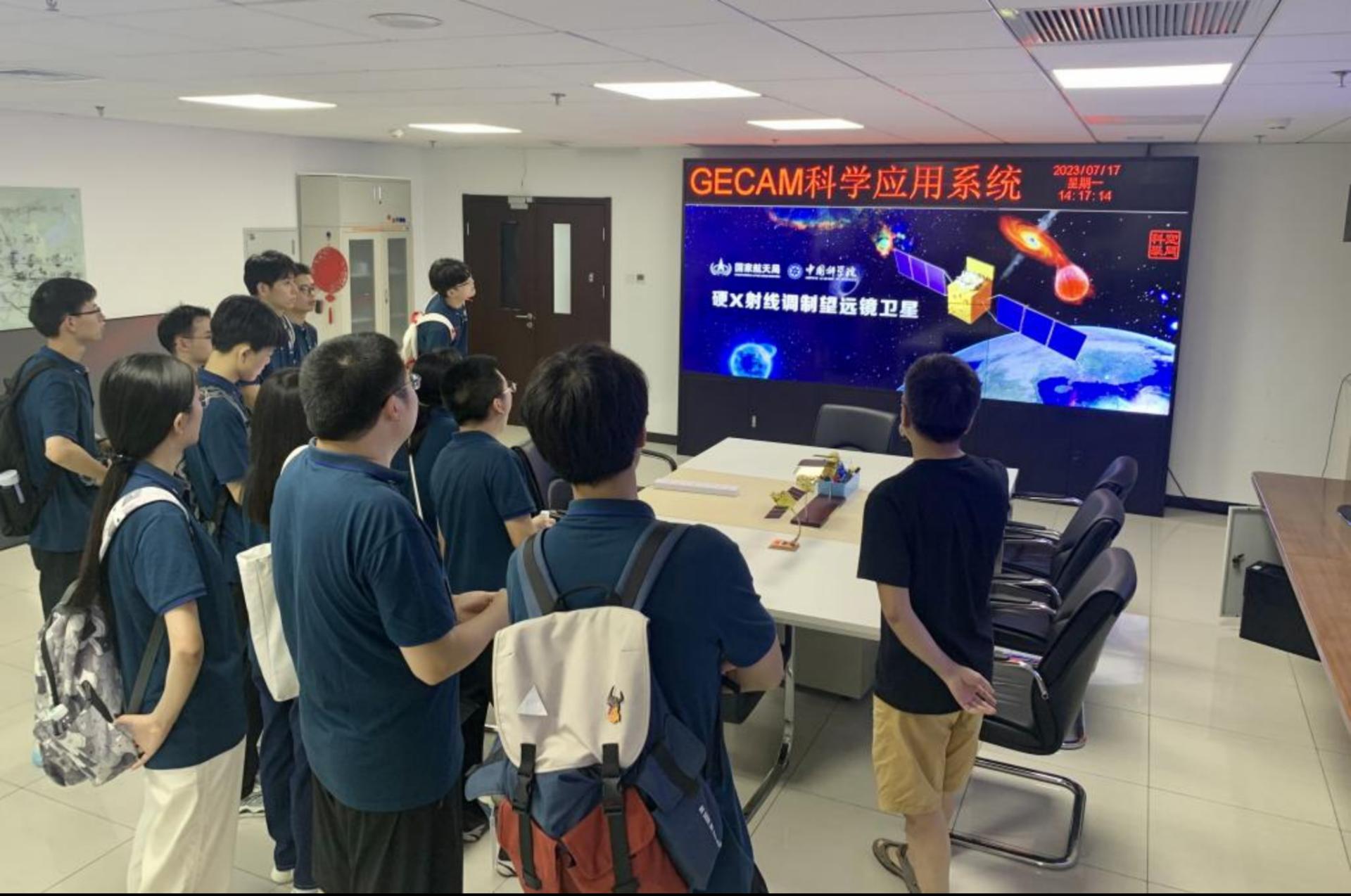 7月17日,实践队来到了高能所的粒子天体物理中心。在这里队员们了解了引力波暴高能电磁对应体全天监测器卫星(GECAM)和高能所参与研发的其他卫星等。同时也认识到LHAASO建设于高海拔地区,通过对宇宙射线簇射后的μ粒子个数的统计以及已经通过对撞机实现的反应来推测宇宙射线的成分。