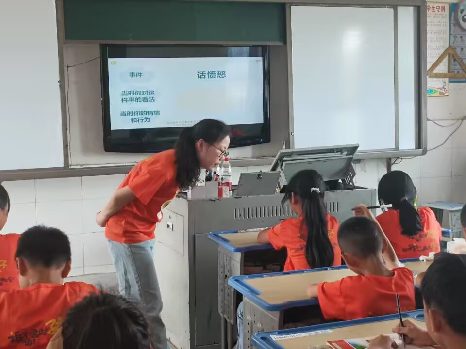 支教队员蒋梁为同学们带来“化解愤怒有良方”一课,包括“我话愤怒”“我懂愤怒”“我化愤怒”三部分。她以学生为主体,让同学们写下曾经令自己愤怒的事情,并进一步分析产生愤怒情绪的原因,帮助学生认识愤怒情绪,带领学生思考减少愤怒情绪的方法,希望同学们深刻体会社会主义核心价值观中的“和谐”二字,做自己情绪的主人。