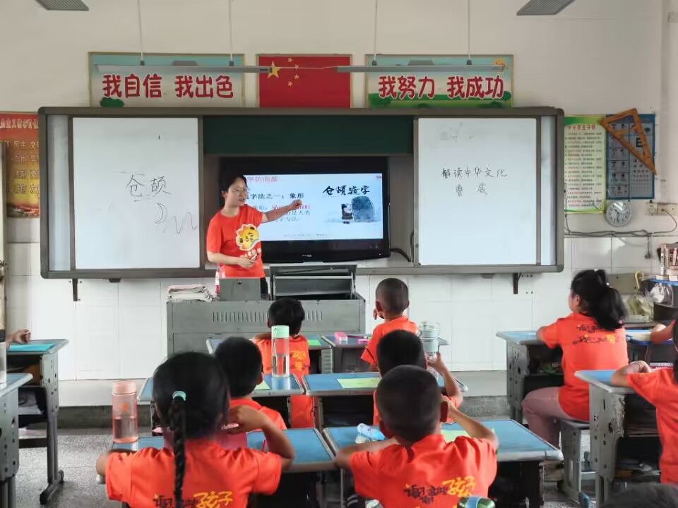体会汉字奥秘,感受中华文化。支教队员曹葳老师教授解密中华文化——仓颉画字,带领同学们了解汉字的起源,解读汉字的奥秘,感悟中华优秀传统文化的魅力。曹葳从语言的产生入手,通过讲述仓颉造字的故事,为同学们讲解汉字产生的必要性。