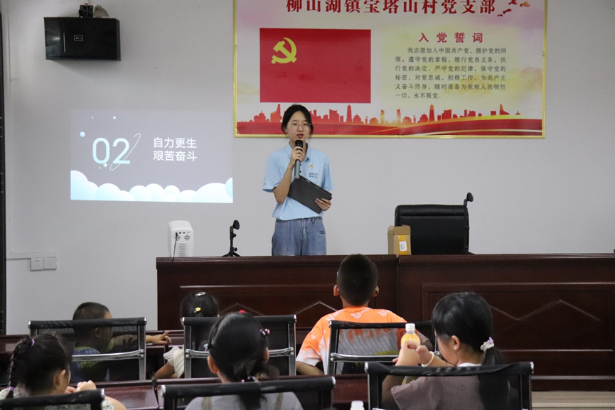7月19日,华中师范大学物理科学与技术学院党员国情学习与实践队(以下简称“实践队”)于湖北省赤壁市柳山湖镇宝塔山村开展系列宣讲活动,宣讲组成员马铭为“希望家园”暑期班的孩子们和家长带来了丰富的宣讲内容。“学习‘两弹一星’精神”旨在帮助孩子们深入体会国家科技成就,培养孩子们的创新思维、创新意识和家国情怀。“深入学习党的二十大精神”旨在赓续红色基因,传递红色力量。