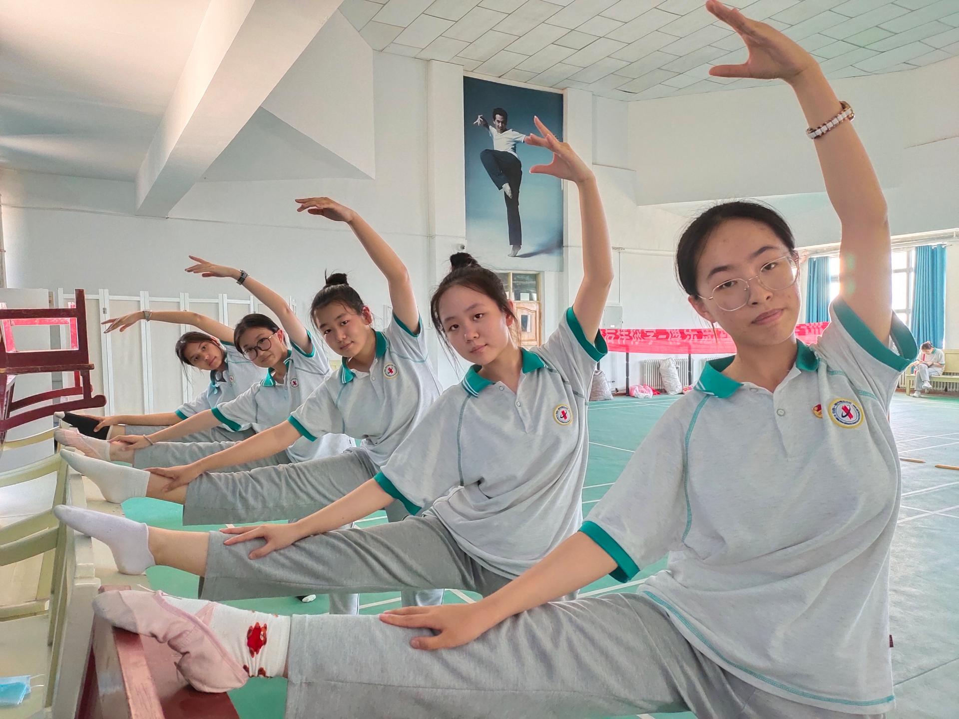 芭蕾是我的最爱,但我是个半路出家的野路子,我想过成为芭蕾舞机构老师,但那应该会是很久以后的事,可没想到一切都是如此巧合:博华高中正好需要老师申报校本课程,以社团课的形式在半学期内每周开展一节。我毫不犹豫地就申报了首个芭蕾社团,尽管现实远不如想象来得美好:没有专业教室、没有地胶、没有把杆、没有音响、没有任何辅助工具,学生甚至都没有舞鞋和服装。但热爱使我绝不退缩,我把自己备用的发网和卡子送给学生,教他们如何盘出规范的芭蕾盘发,没有地胶我们就一起把羽毛球场拖干净,没有软鞋就穿旧袜子,没有把杆就把椅子并成一排,没有音响就把手机音量开到最大。