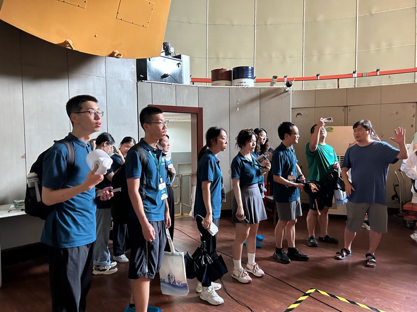 7月14日上午,实践队受到上海天文台马金老师的热情接待,来到上海天文台VLBI(甚长基线干涉测量)深空探测指挥控制中心。马茂莉老师在测控中心进行了VLBI任务的报告。她介绍了VLBI技术在嫦娥工程、火星探测、子网规划以及行星星际空间探测的应用,并分享了上海天文台在相关任务所获得的荣誉。上海天文台高级工程师赵融冰老师作《天马望远镜及其应用》报告,他讲解了天马望远镜的研发、原理、应用和发展,从工程角度为队员们介绍了天马望远镜。