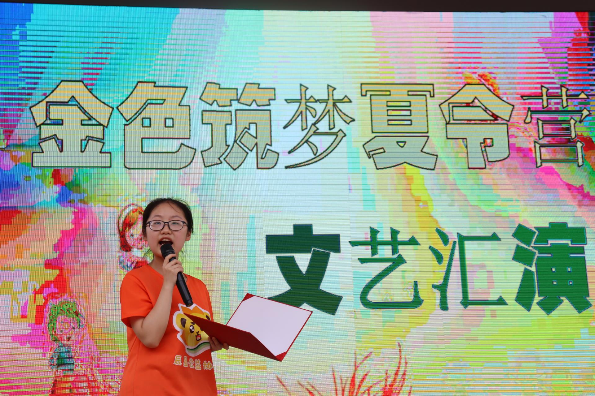 (支教队队长姜旭蕾主持金色筑梦夏令营文艺汇演)