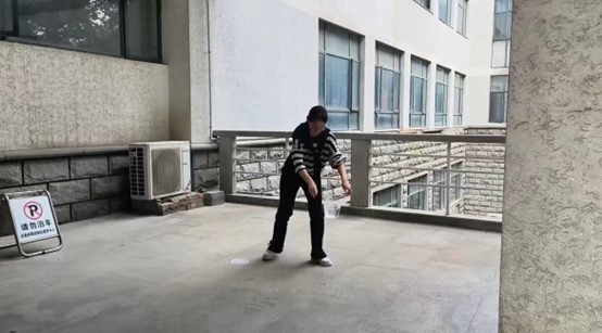 在室外活动中,于慧馨邀请同学们进行了“乒乓火箭”的物理实验,“这个实验的原理并不复杂,乒乓球在受到撞击后,液体会向中间聚集,中部液体向上快速弹起将动能传递给乒乓球,乒乓球质量小从而获得较大动能后以较大初速度弹起,进而弹起较高的高度”,讲解后,于慧馨引导辅助同学们一起进行操作,在实际动手操作中体会我国科研工作者的智慧。
