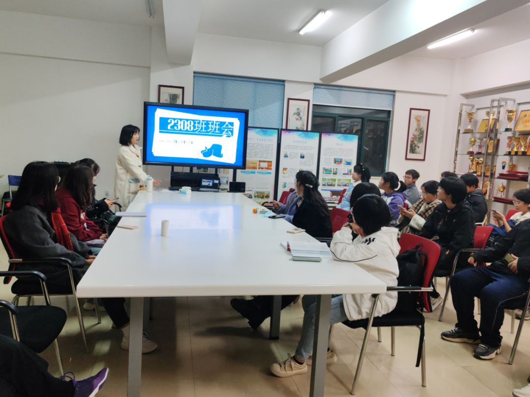 11月26日晚,学院2308班于9551会议室开展“聚焦成果,共创辉煌”主题班会。班主任乔翠兰、班主任助理梁珈瑞以及2308班全体同学参与。班会由班长李心然主持。