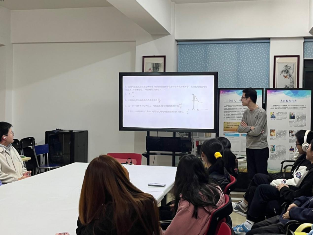 活动第二项,由20级优秀学长赵卓伟为大家作学习经验的分享。在简单的自我介绍后,他拿出了事先准备的一道高中物理题,测试同学们能否快速做出反应。这种熟悉又“接地气”的开场,让同学们很快进入了状态。