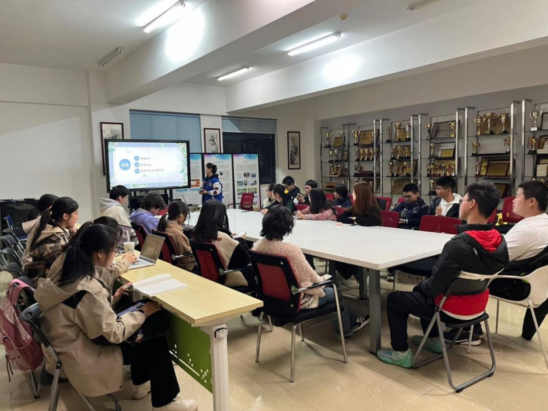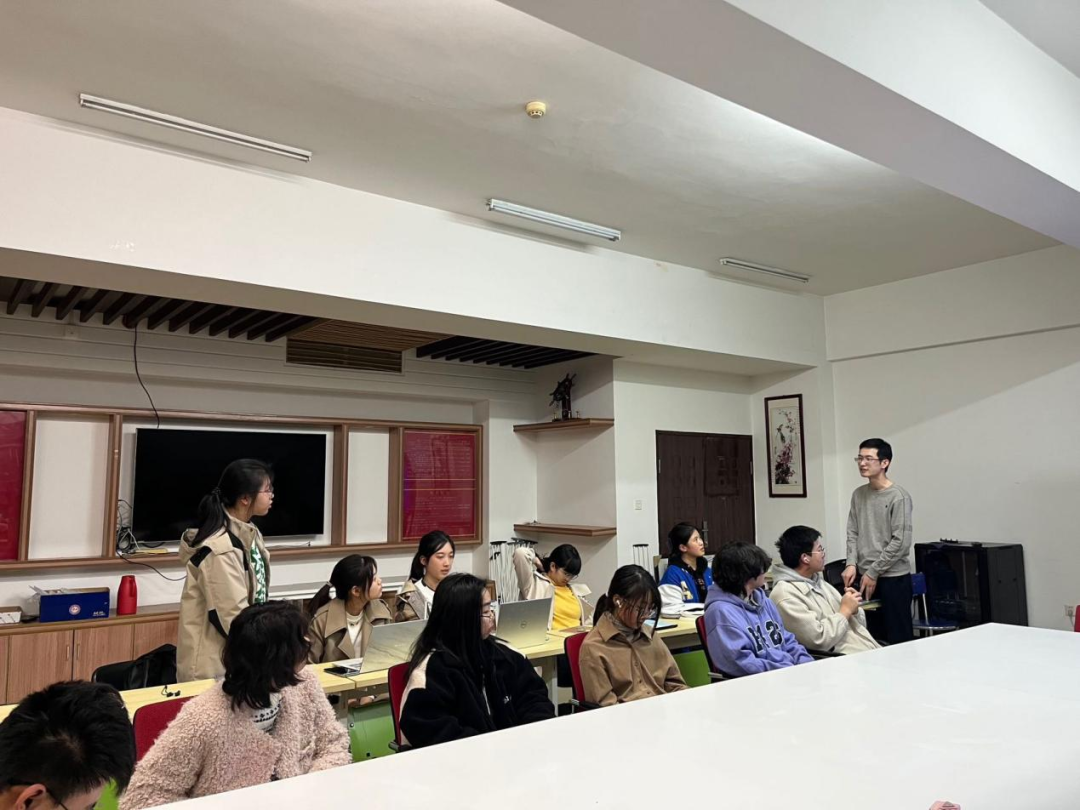 为深入学习党的二十大精神,深刻理解“强国复兴”的意义,激发同学们的爱国情怀,11月21日晚,学院2309团支部开展了以“生逢其时拼搏,强国复兴有我”为主题的团日活动。活动邀请了20级优秀学长赵卓伟为同学们分享学习经验,2309团支部全体成员参加。活动由团支书庞佳佳主持。