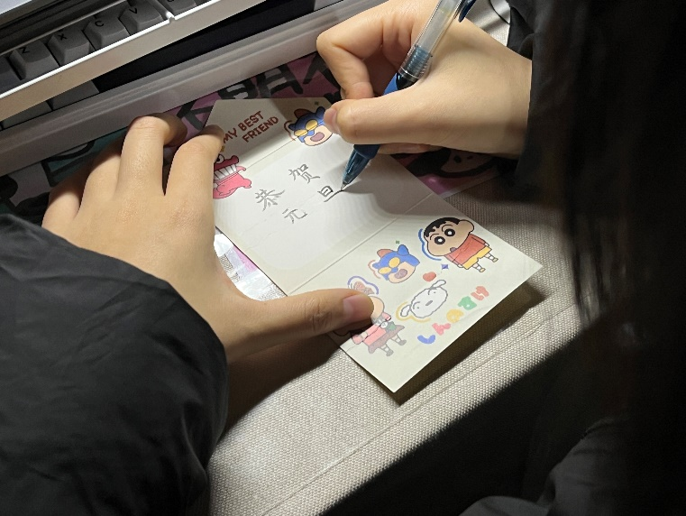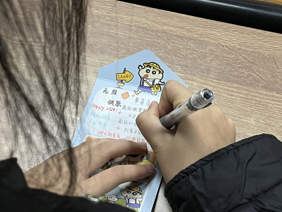 每位同学在贺卡中写下真挚祝福和甜蜜话语,再将贺卡随机分配给其他同学。一张张贺卡承载着大家的美好祝愿与暖心叮咛,传递着彼此之间的爱和温暖。小贺卡里装满大祝福,同学们心和心的距离更靠近,也建立起一段难能可贵的情谊。衷心希望同学们的心愿,都会遵循着你走着的踪迹,延展到另一条更广阔的路上。