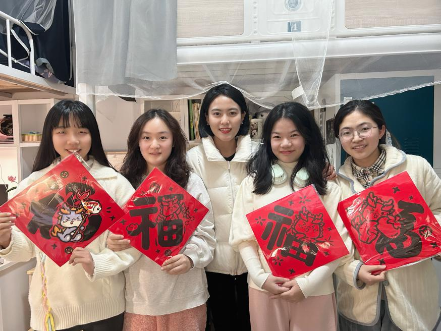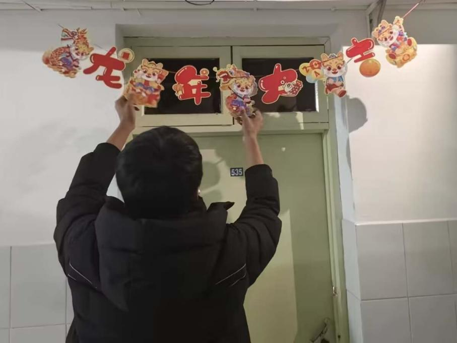 张贴春联、福字、挂饰,开启一场别开生面的新年装饰热潮,将寝室打造成一个充满幸福氛围的温馨角落。寝室门口,各式福字仿佛是邀请新年好运的小使者,让整个寝室充满了温馨与喜庆。不仅为同学们带来了幸福的氛围,拉近了寝室成员之间的感情,架起了同学们与辅导员的沟通桥梁,也为新年的到来增添了一抹美丽的风景。
