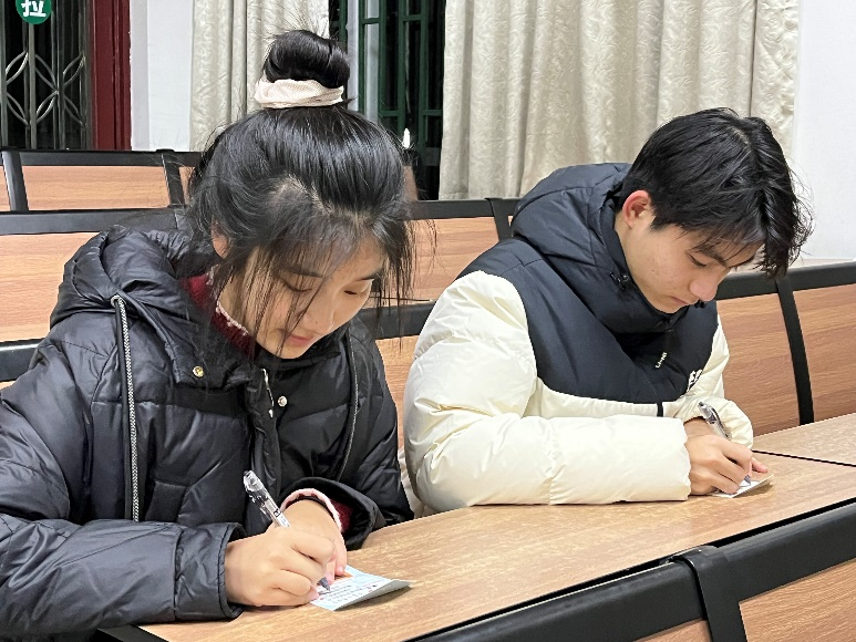 元旦佳节,同学们用欢声笑语共同编织美好的回忆。击鼓传花、数字炸弹、逢七必过、我有你没有……大家积极参与各种趣味游戏,一起度过其乐融融的美好时光。游戏中的“惩罚”环节让同学们热情高涨,现场充满欢声笑语,气氛和谐而温馨。伴随着《七里香》合唱,摇晃的手机闪光灯将今晚点缀得璀璨夺目,这大抵就是青春的一抹亮色。