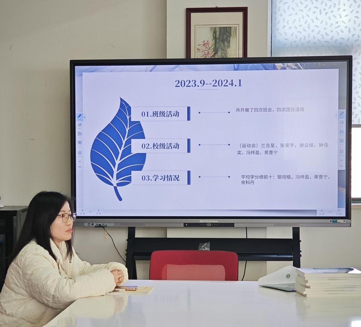 班会伊始,班长何清川从班团活动、校院活动、学习情况等方面对上学期班级成果进行总结。金晶老师对班级总体成绩表示肯定和赞扬,鼓励大家向银培植、冯梓盈、黄曹宁、余科丹四名位列专业前十的同学学习,同时她也希望班级能建立更良好的学习氛围,同学们一起成长、共同进步。随后,通过转专业考试的七位新同学依次向大家做自我介绍。同学们纷纷热情地鼓掌,欢迎他们的到来。