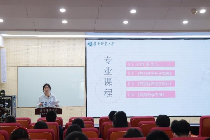 2021级基地班梅雪仑提醒同学们在专业课的学习过程中要摆正心态,认真对待作业,做好课前预习和课后整理归纳。她以自己学习《电动力学》这门课程的亲身经历强调了自学的重要性,并推荐了一些优秀的参考教材和学习软件。