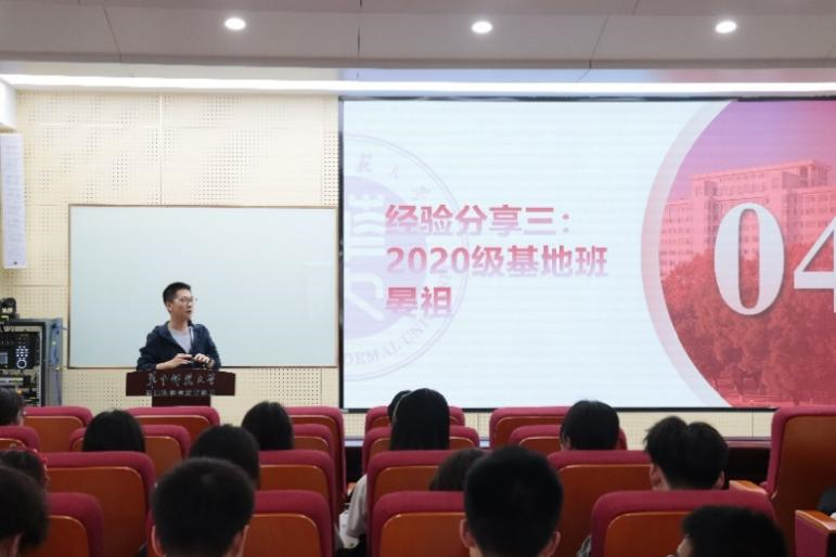 2020级基地班晏祖围绕保研经历进行了细致分享,他认为同学们不仅要注重专业课学习,也要提高自身数学、英语和计算机的能力水平。他推荐同学们参加一些学术竞赛和科研活动,寻找自己感兴趣的研究方向的同时也能够拓宽眼界。