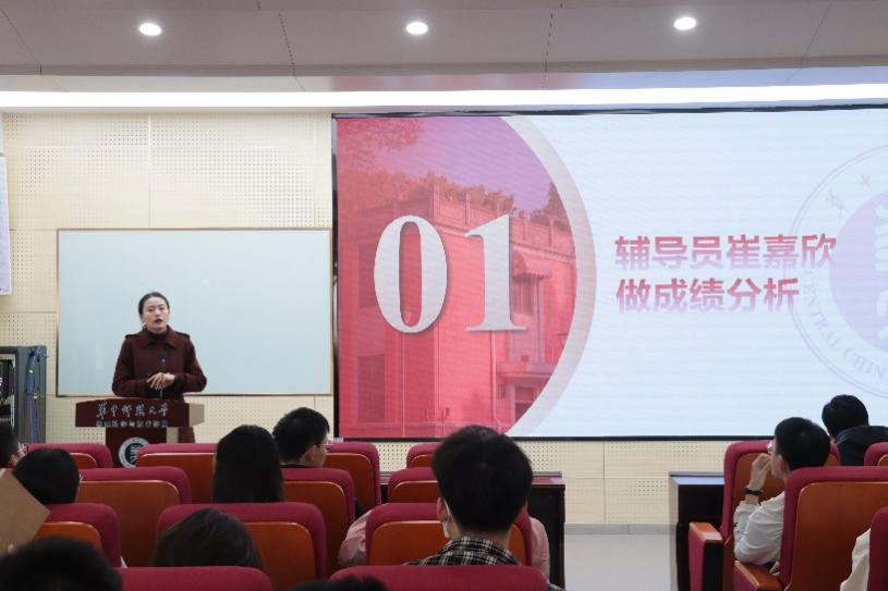 辅导员崔嘉欣通过横向、纵向对比分析了2022级、2023级基地班上学期成绩情况。她肯定了同学们在学习、生活、个性发展等方面取得的突出成果,同时建议同学们在做好专业课学习的基础上也要注重英语学习和体育锻炼。