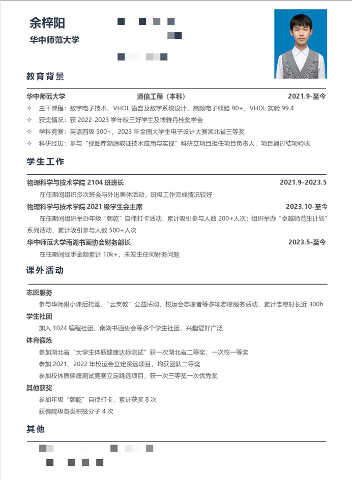 (余梓阳简历)