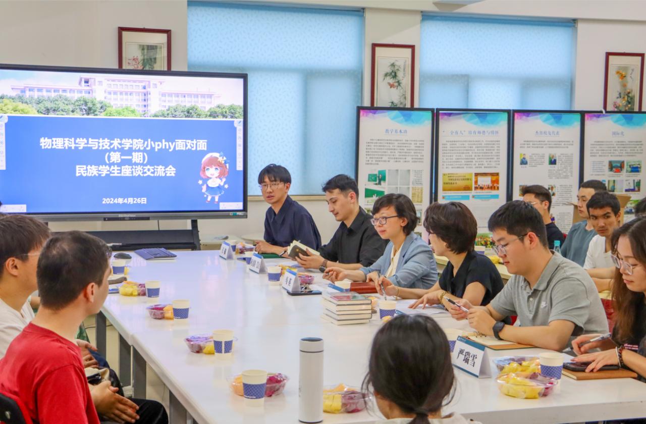 为进一步了解学院各民族学生的学习生活状况,加强师生交流互动,助力学生成长发展。4月26日晚,物理学院于九号楼9551活动室开展各民族学生座谈交流会活动。学院党委副书记马英、党委学工部民族团结教育办公室美合日姑丽·阿不都外力、阿力夏特·艾力出席,学院“格致”民族团结教育工作室负责人王棣、辅导员姜春勇、严瑞雪及各年级民族学生代表共30余人参加活动。