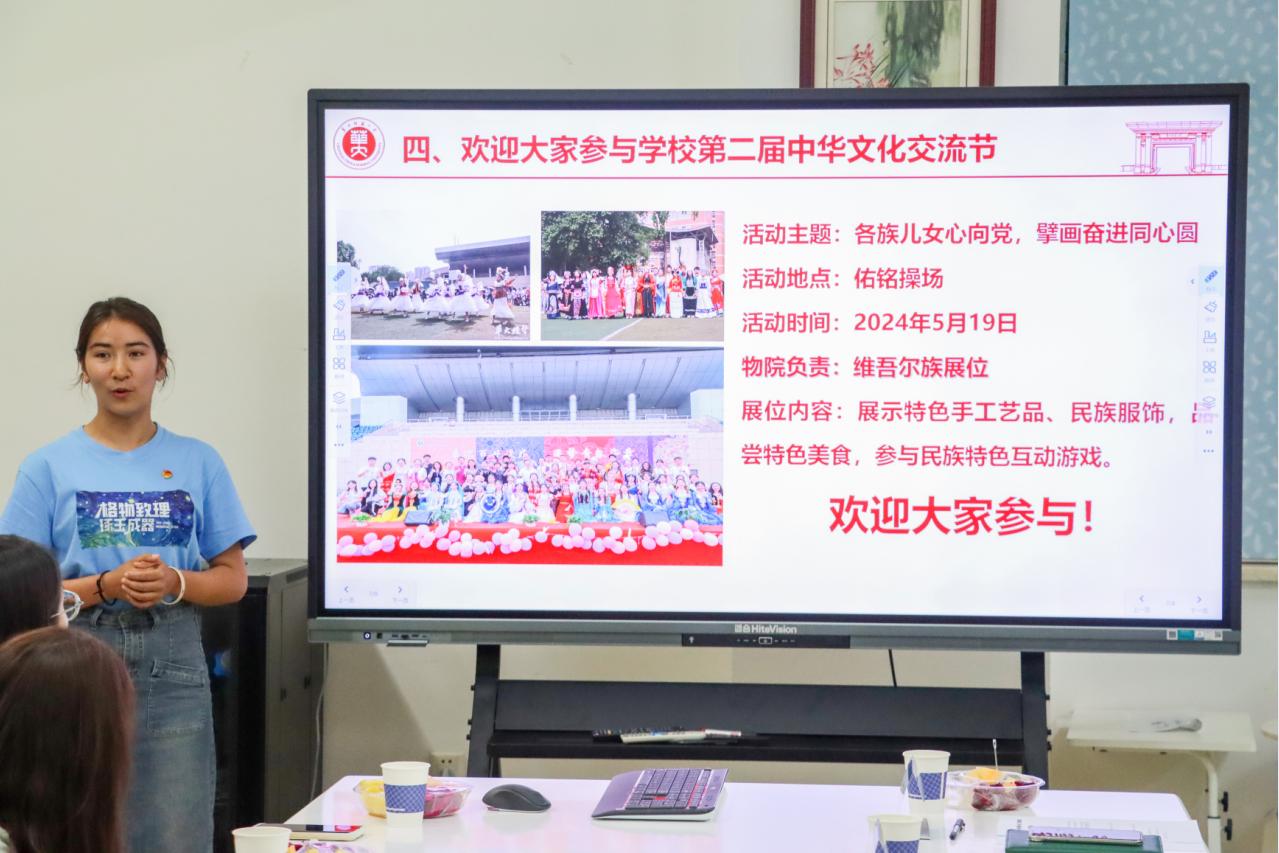 接着,学院“格致”民族团结教育工作室学生负责人卡迪尔娅·尼亚孜介绍了工作室的基本概况、2023年工作成绩、2024年工作安排,并向大家推介学校第二届中华文化交流节,鼓励同学们积极参与活动。