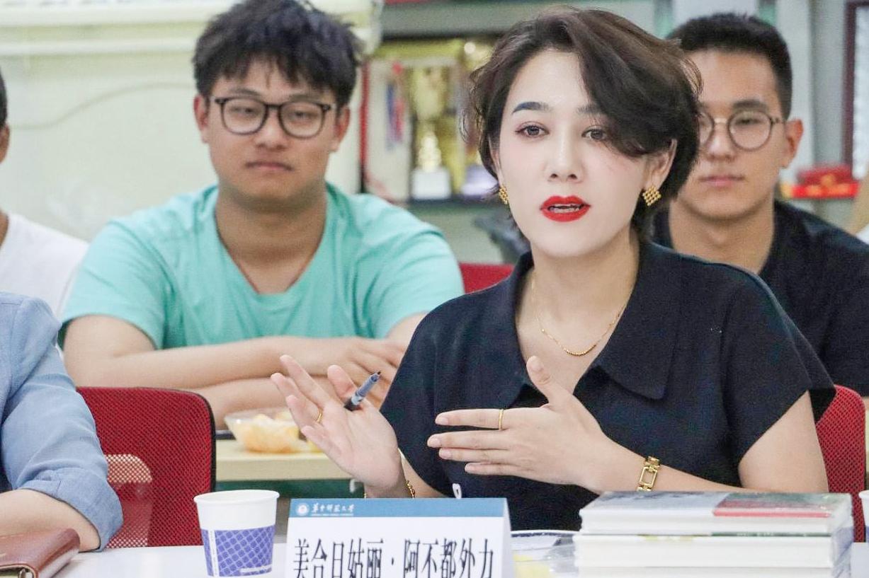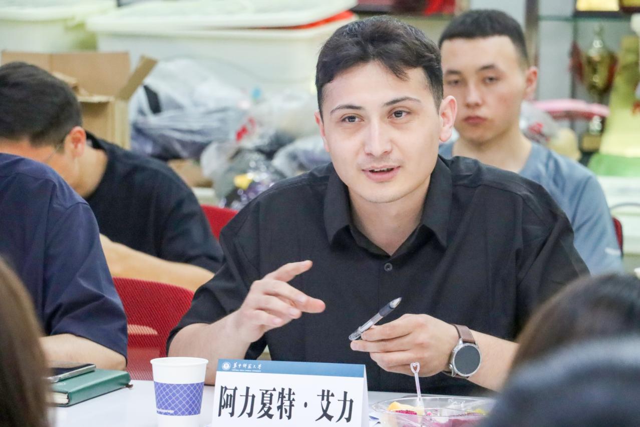 美合日姑丽首先感谢学院的精心组织与安排,这样的活动形式非常好地促进了各民族学生的交往交流交融,同时也欢迎同学们有问题有需求随时去华大民族团结进步之家。随后,她从关于理想信念、关于青春、关于学习、关于心态、关于远方五个方面真情讲述,鼓励同学们不忘初心、踔厉奋发,践行“求实创新,立德树人”的校训精神,致力于做一名信念坚定、本领过硬、素质全面、勇于担当的新时代青年。