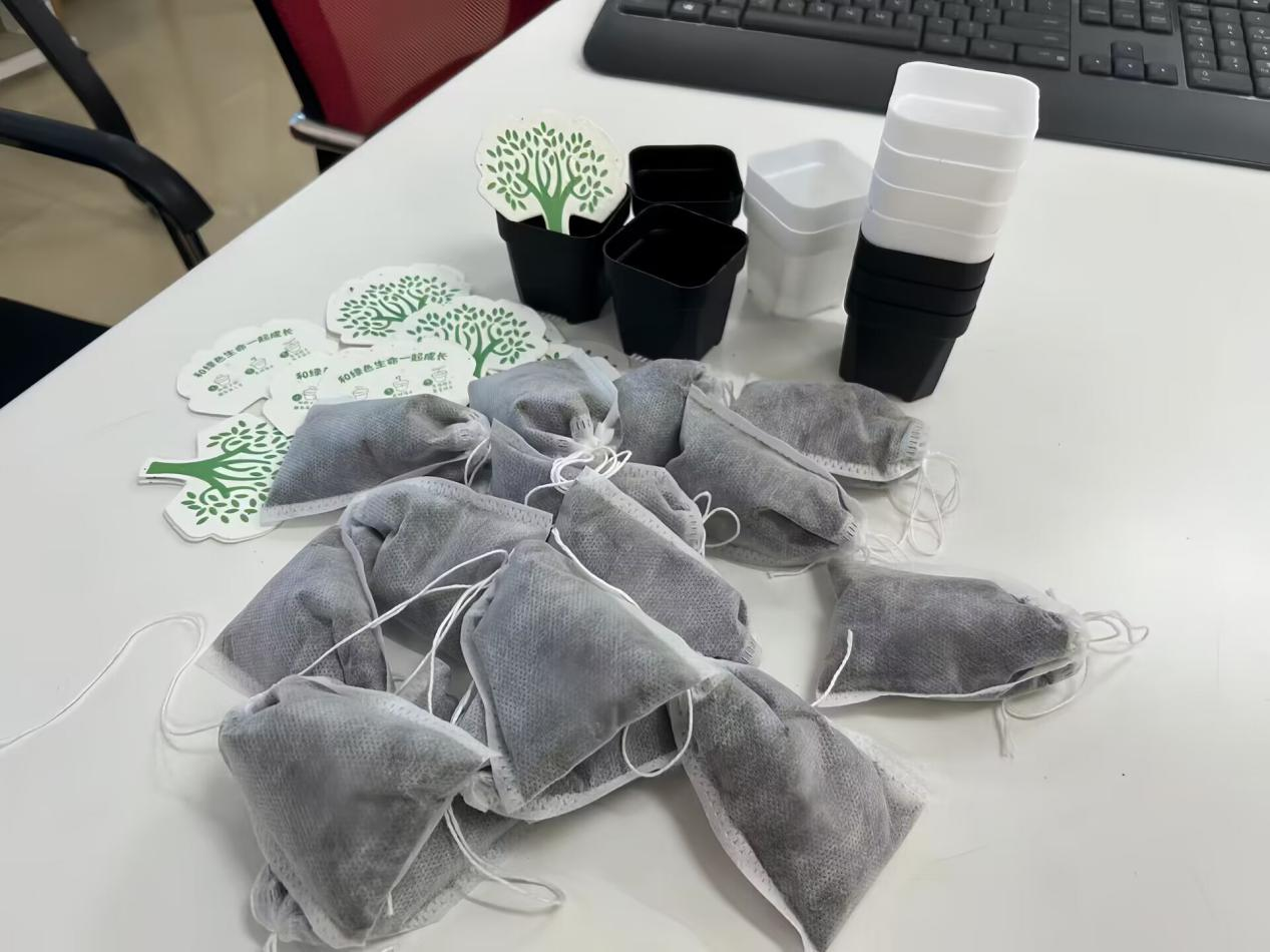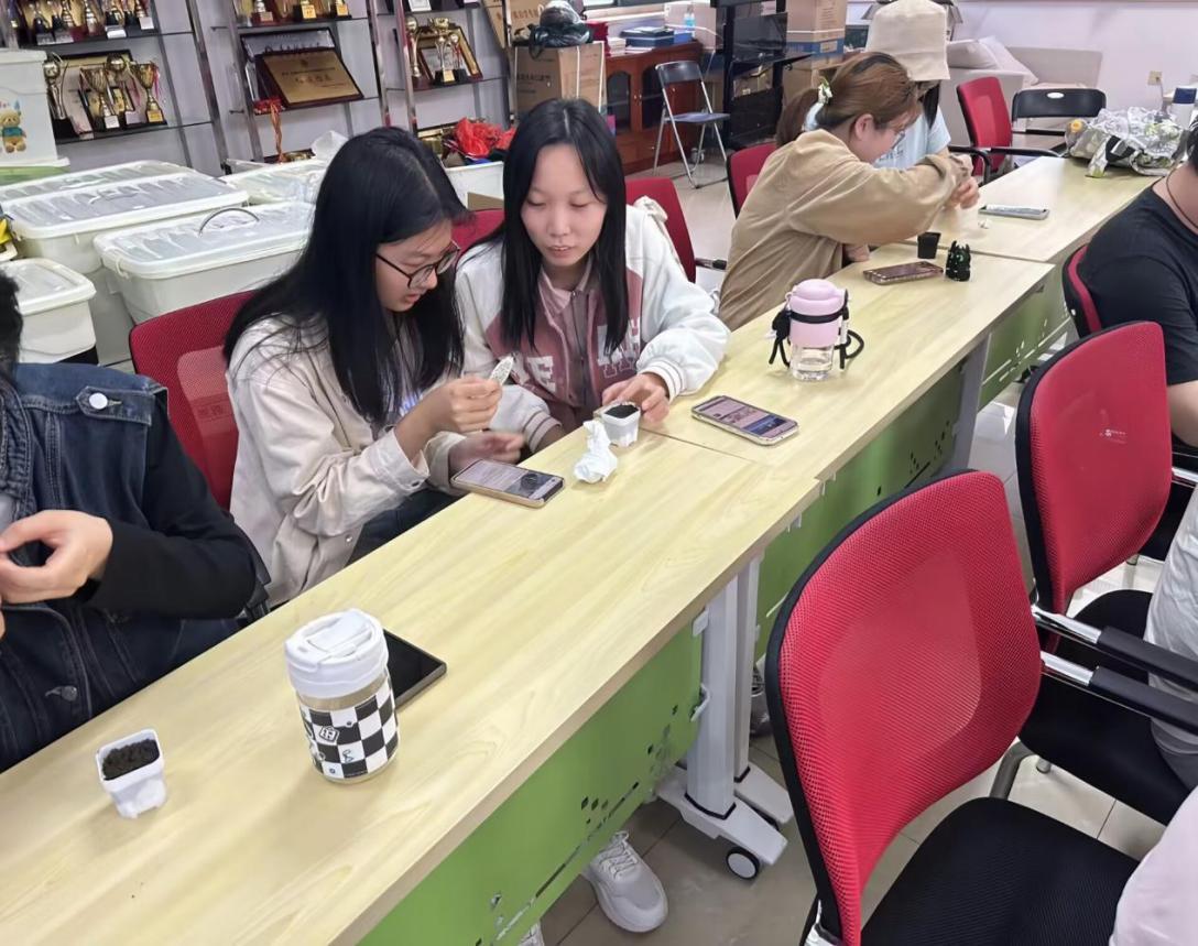 在知识竞答之后,班长姜米带领同学们聚焦于易被人忽略的咖啡渣,把废弃的咖啡渣当做肥料种下种子。同学们亲自动手实践,在这一过程当中重新定义“废品”,了解更多的环保知识。