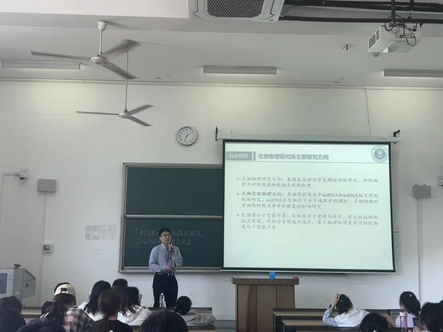 随后,同学们按照专业分别在9401以及9403教室聆听电通信和物理学专业教师对升学形势以及学院本专业的研究生教育情况的分享。