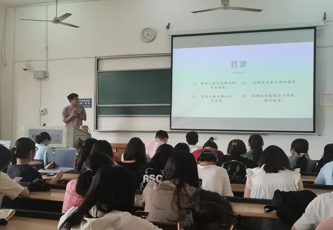 最后,他重点向同学们介绍了在求职过程中如何制作简历以及获取可靠就业信息的渠道。
