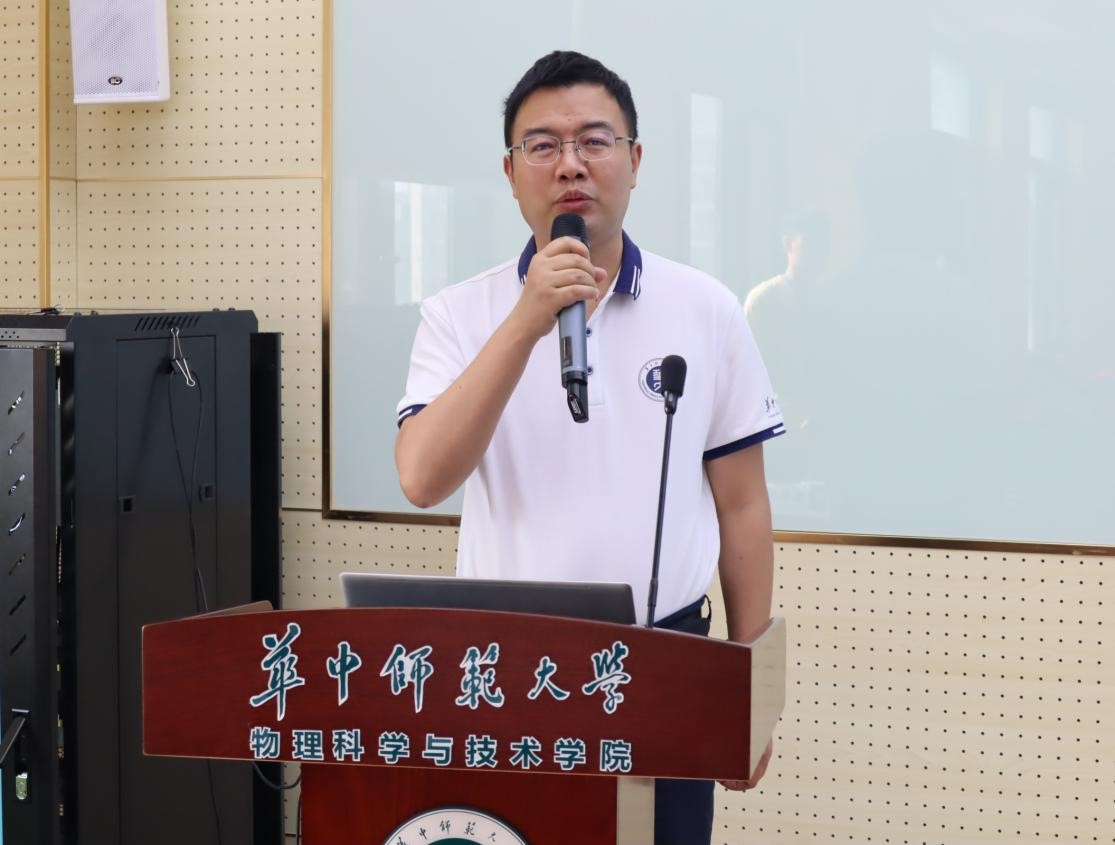 6月1日,我院“汲物载梦·携理启航”第四届研究生教学创新大赛成功举办。大赛邀请到武昌实验中学李玉白、水果湖中学彭习辉、洪山区教科院张玉玲、武汉六中王清华,建港中学凌宇峰、华师一附中初中部吴明海等六位一线物理名师及我院熊水兵、乔翠兰、谢丽三位专任老师担任评委。学院党委书记金新利、副院长俞云伟、党委副书记马英、研究生辅导员王秋革出席本次大赛。大赛开、闭幕式由研究生兼职辅导员和嫣婷主持。