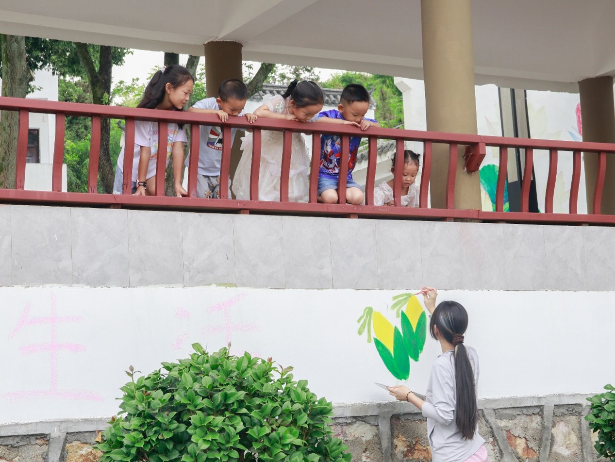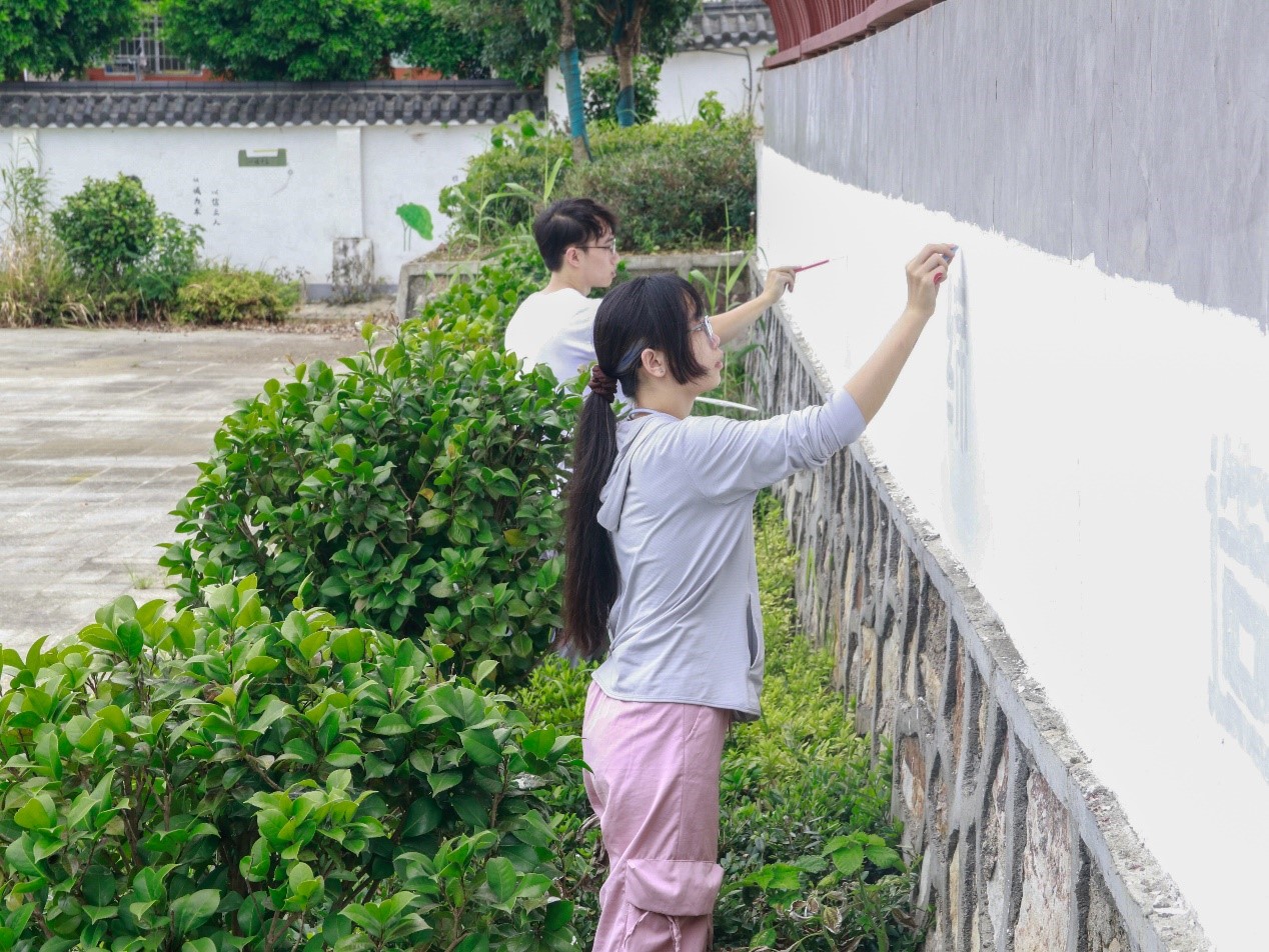 初来宝塔山村,就被它美丽的风景所打动。经过最开始的手忙脚乱后,我们也逐渐适应了在宝塔山村的生活,对于文化墙的绘制也提上了日程。经过与陈书记的商议后我们选定了文化墙的墙址和主题,在第二天就开始着手文化墙的设计。由于天气原因和蚊虫叮咬的问题,我们选择在清早5-6点时进行绘制的工作,在共同缔造的主题下展现了农村幸福生活的多姿多彩。在绘画的过程中我们也与当地村民进行了交谈,在交谈中我感受到了村民的热情和质朴,希望能通过我们的力量美化乡村环境。