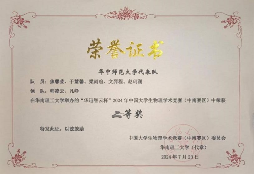 第十五中国大学生物理学术竞赛(CUPT)中南地区赛于2024年7月20日至24日在广东省华南理工大学物理与光电学院举办,比赛汇集了中南地区21所高校的22支代表队参赛(东道主2支),包括了武汉大学、华中科技大学、哈尔滨工业大学(深圳)、中南大学、中山大学等众多国内知名985高校。赛事共分为团队赛和作品赛两大类。