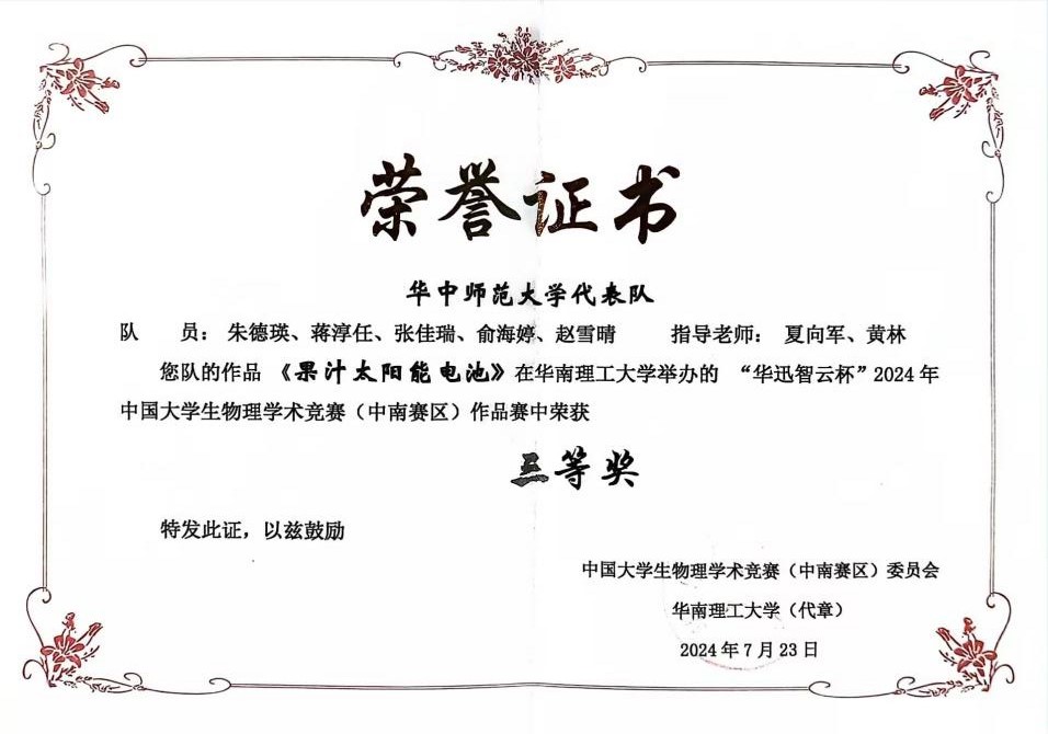 自今年2月华中师范大学2024年CUPT团队正式组建以来,团队成员刻苦学习,勤奋钻研。夏向军、金猛、黄林等老师组成的指导团队,坚持每周召开讨论会悉心指导,和同学们研讨比赛题目。暑期,全体参赛同学留校备赛,定期向老师们汇报参赛题目的研究进展,进一步完善理论与实验探究。进入中南赛最后的冲刺阶段,指导老师担当评委,指导同学们进行了多场内部模拟对抗演练进行“热身”。本次比赛获得的各个奖项,展示了我院参赛队员对题目良好的理解和完成度以及团队优良的团结协作风貌。
