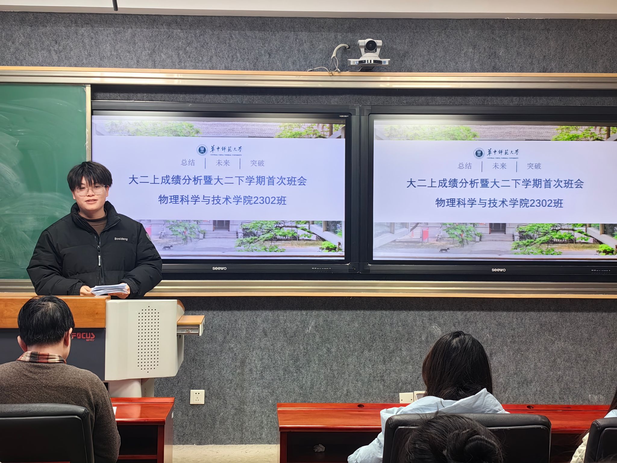 2月19日下午,院2302班在9538教室举办了“新学期,新起点,共赴成长之约”主题班会。班会由班长吴科汝主持,班主任赵蕴杰老师及2302班全体同学共同参与。