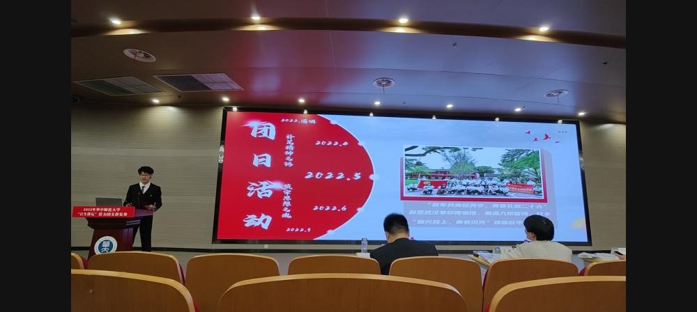 自闯入校赛以来,2110团支部积极准备材料,认真筹备答辩、展演。10月4日下午,团支书翟子昊在南湖综合楼一楼学术报告厅参加了复赛答辩。通过形式多样的PPT展示讲解,翟子昊向评委老师与各学院参赛成员展示了所在团支部的扎实工作与亮点成果。最终以全校第三名的成绩成功挺进决赛。