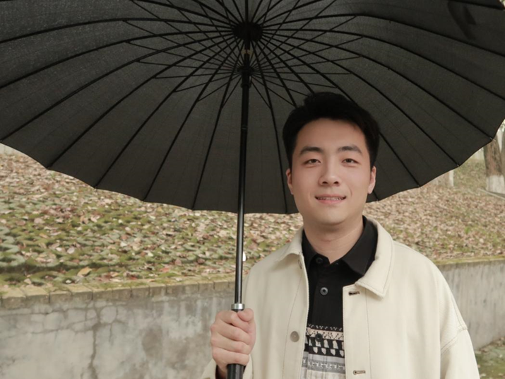 步履匆匆,穿着深色系衣服。在学院的迎新晚会、露天音乐会、乒乓球比赛上都能看到他的身影。